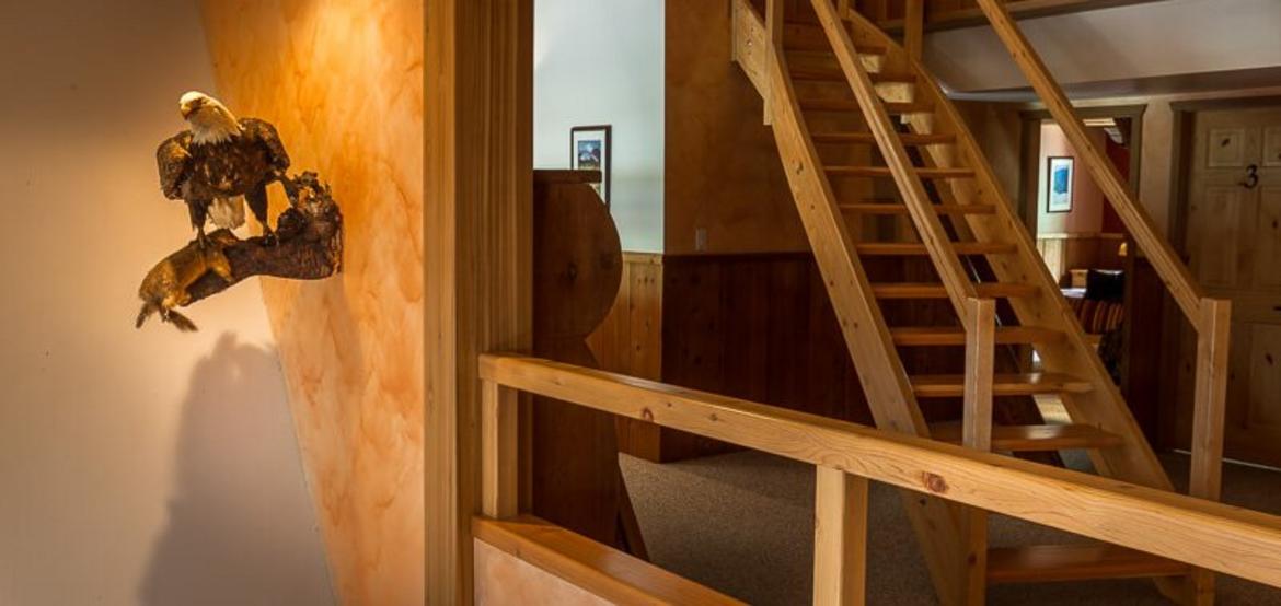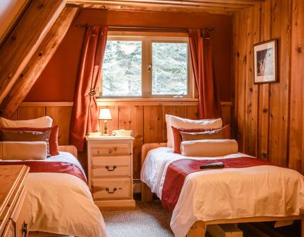Die Hauptlodge ist ein markantes, 7.250 Quadratfuß großes dreifaches A-Frame-Gebäude mit hohen Decken und weitem Blick auf die umliegende Wildnis. Gäste übernachten in acht hochwertig ausgestatteten Zimmern mit privaten En-suite-Badezimmern sowie zwei weiteren Zimmern in einer separaten Seeuferhütte. Nach langen Tagen in den Bergen bietet das Spa-Chalet den perfekten Ort zum Entspannen – mit Sauna, Dampfbad, Massageraum und einem Outdoor-Whirlpool mit Blick auf den See.