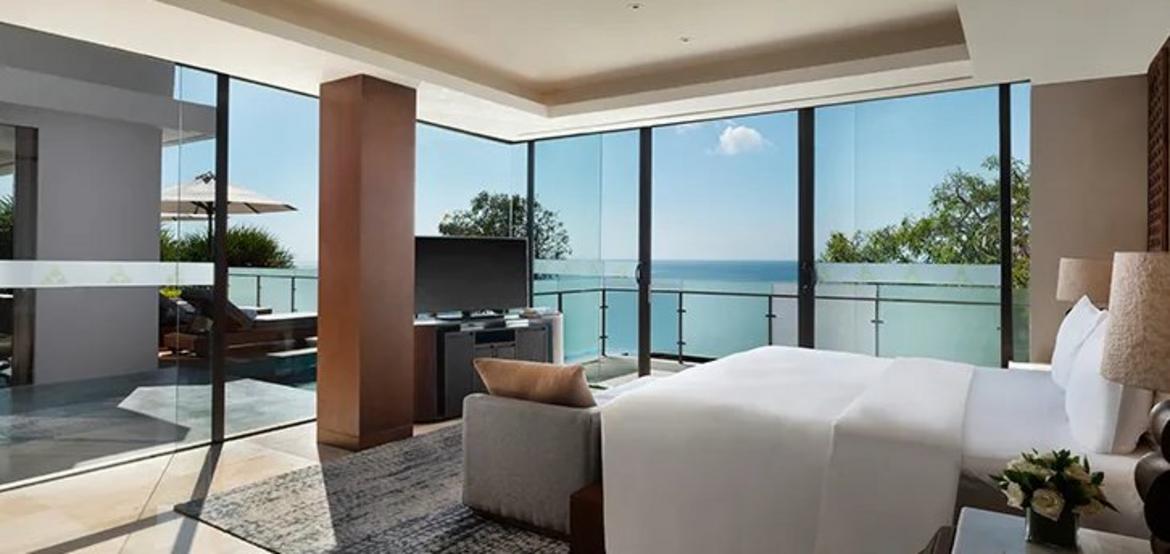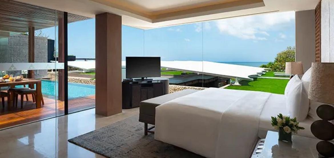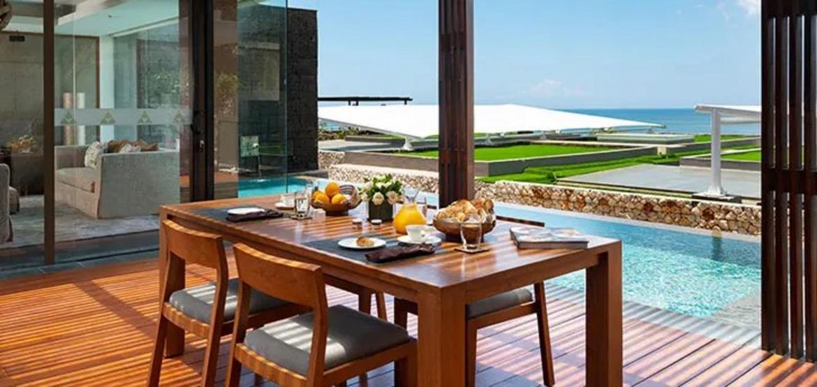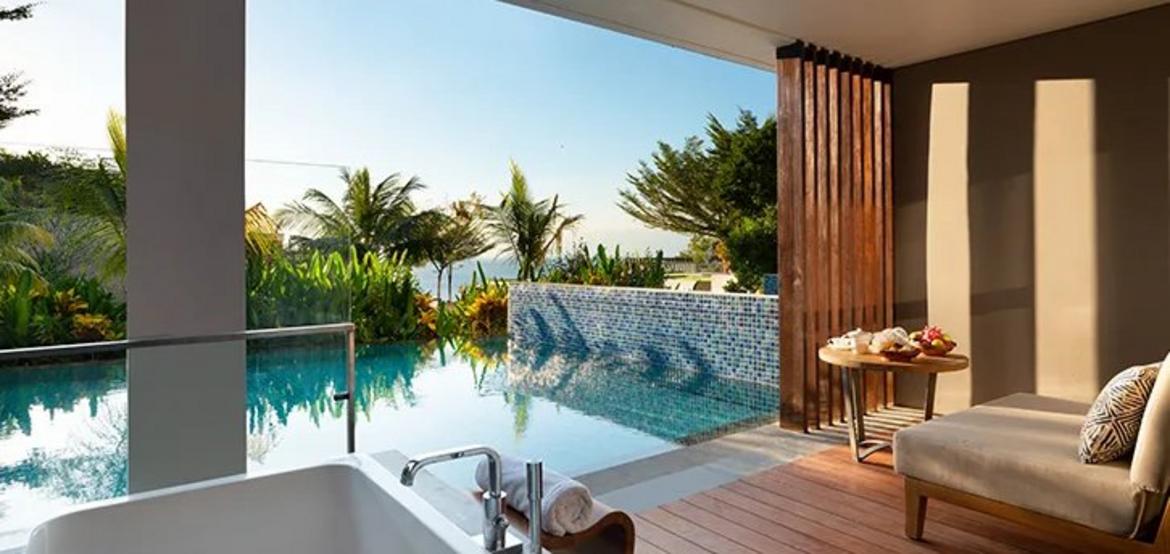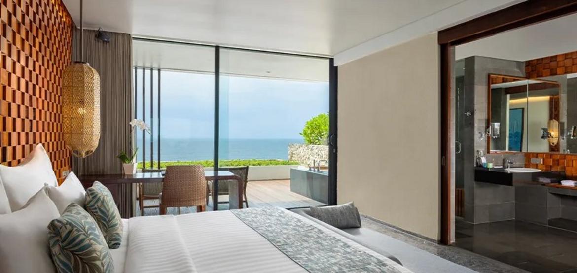 Die Three Bedroom Pool Villas unseres Uluwatu Resorts verbinden großzügiges Indoor- und Outdoor-Living mit atemberaubendem Meerblick. Über mehrere Ebenen gestaltet, bietet jedes Ensuite-Schlafzimmer eine private Oase aus Komfort und Raum – perfekt für Paare oder Familien, die gemeinsam reisen. Überquere die charmante Brücke zu deiner privaten Dining-Plattform und stoße beim Sonnenuntergang mit einem Glas Champagner an, während sich der Ozean endlos vor dir ausbreitet.