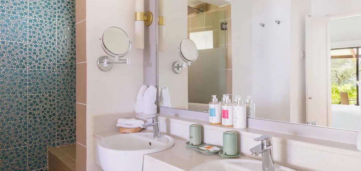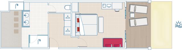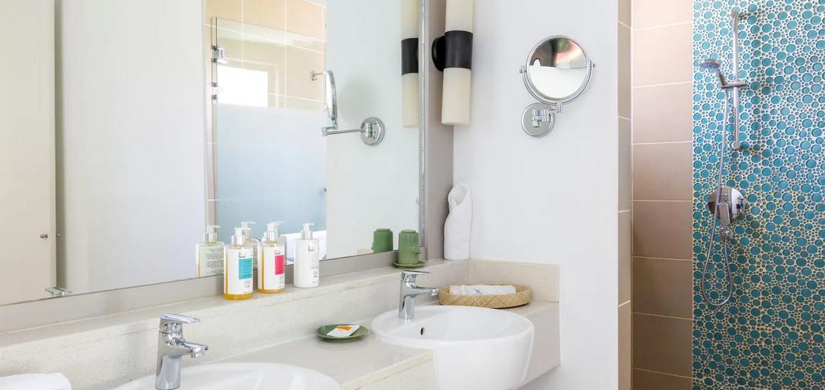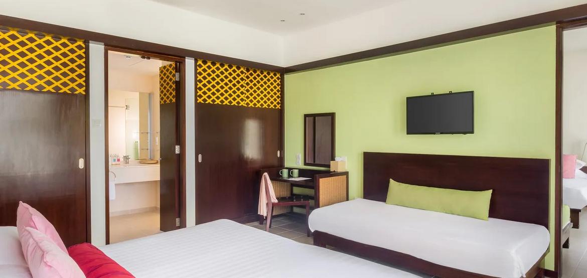 Die Bungalows verfügen über zwei Schlafzimmer und zwei Duschbäder. Alle Zimmer haben Meerblick sowie einen Balkon oder eine Terrasse mit Tisch und Stühlen. Die Zimmer sind mit einem Mini-Kühlschrank (nicht befüllt) ausgestattet. Diese Zimmer liegen zentral in der Clubanlage, in der Nähe des Pools, im Erdgeschoss oder im ersten Stock. Kann nur mit derselben Zimmerkategorie kombiniert werden.