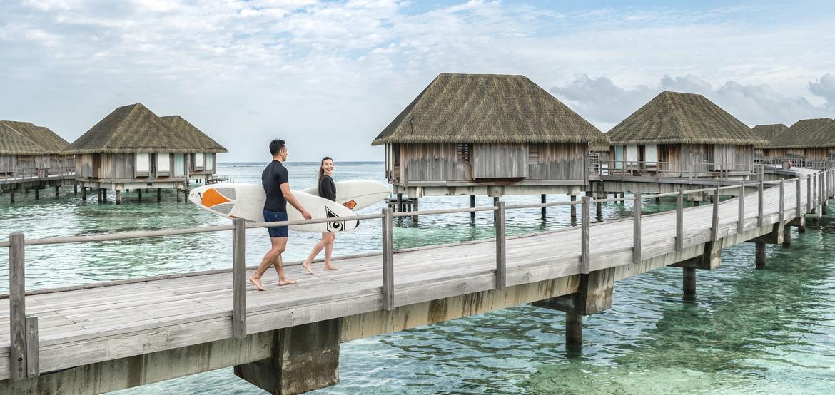 Als Surf-Einsteiger kannst du im Resort Einzelstunden oder Kleingruppen-Lessons buchen. Wenn du schon erfahrener bist und nach der Welle deines Lebens suchst, charterst du dein eigenes Boot und nutzt das Insider-Wissen der Surf-Guides. So surfst du einige der bekanntesten Waves weltweit – in absolut glasklarem Wasser. Mit ein bisschen Glück begegnet dir sogar eine Schildkröte im Lineup!