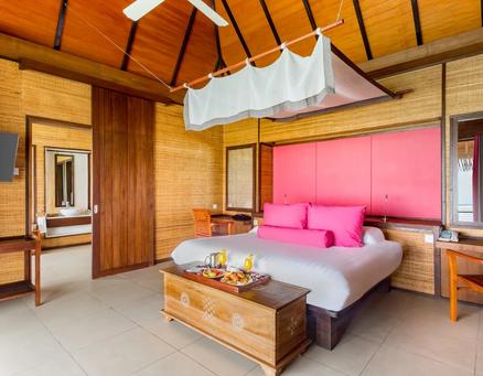 Du hast die Wahl zwischen verschiedenen Unterkunftsoptionen – von privaten Ein- und Zweischlafzimmer-Villen am Strand mit Blick in die tropischen Gärten, über Beachfront-Paradiese bis hin zu den exklusiven Water Bungalows, die direkt über der kristallklaren Lagune thronen. Alle Unterkünfte sind stilvoll eingerichtet und mit allen Annehmlichkeiten ausgestattet. Einige Zimmer bieten sogar separate Schlafbereiche für Kinder – für den bestmöglichen Aufenthalt.