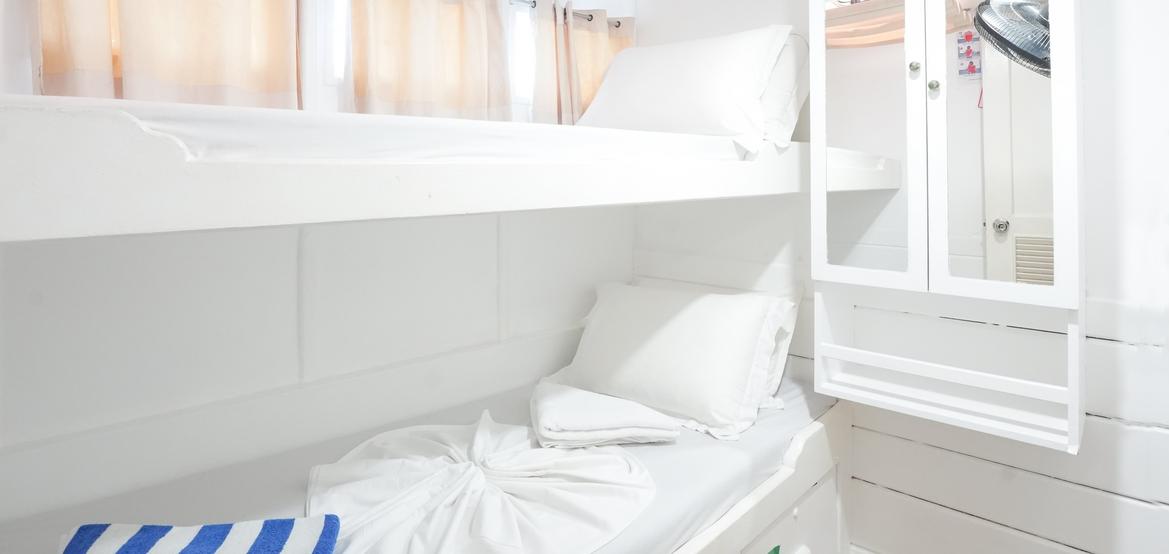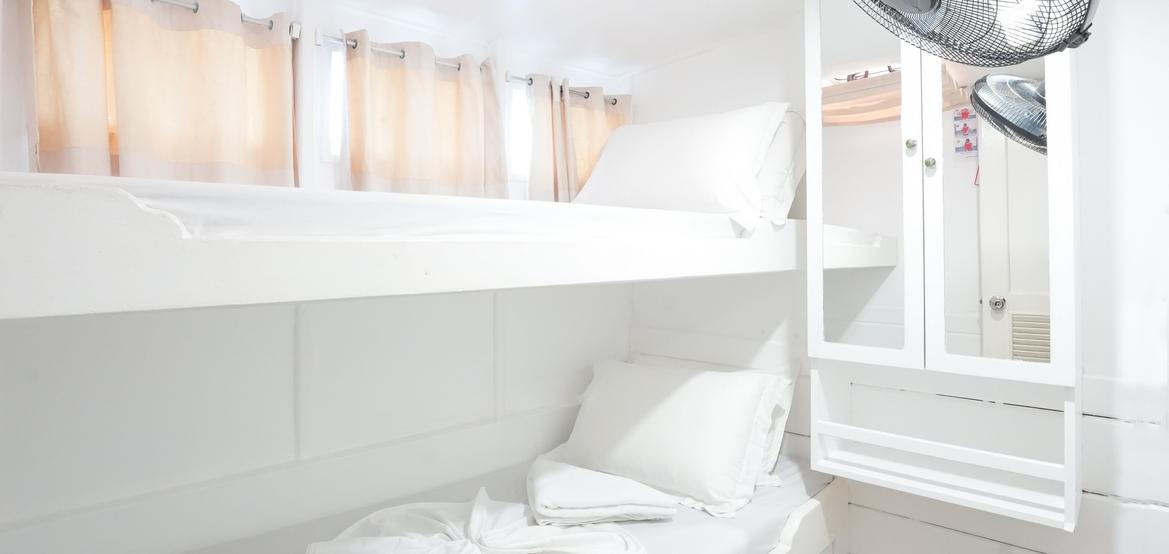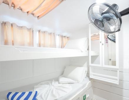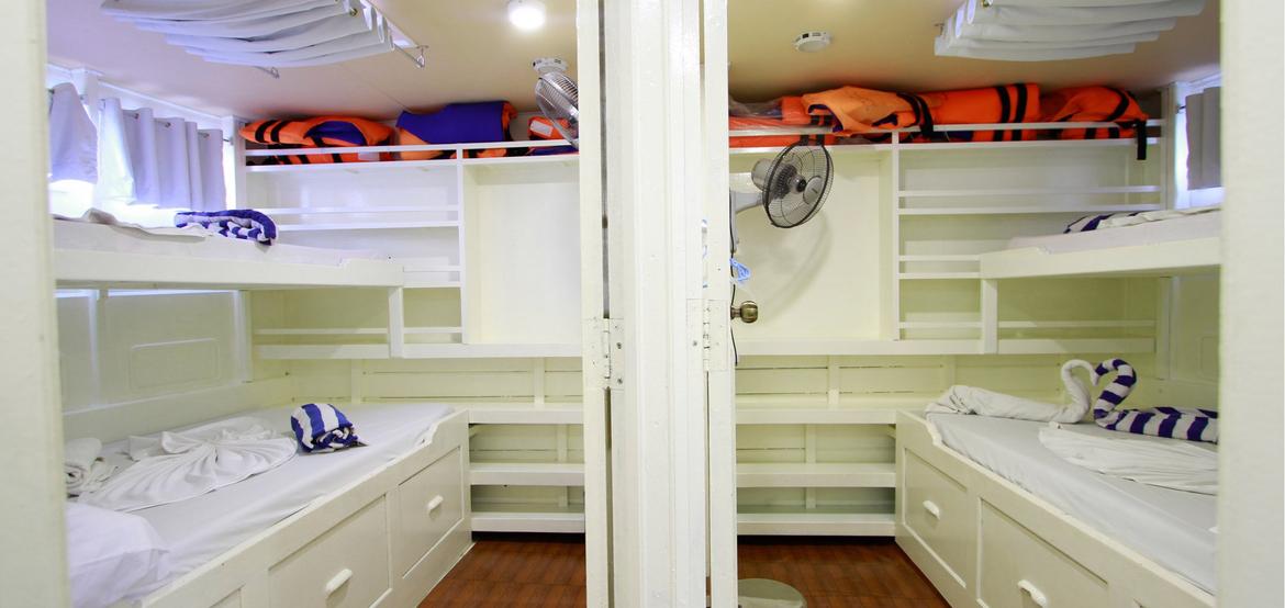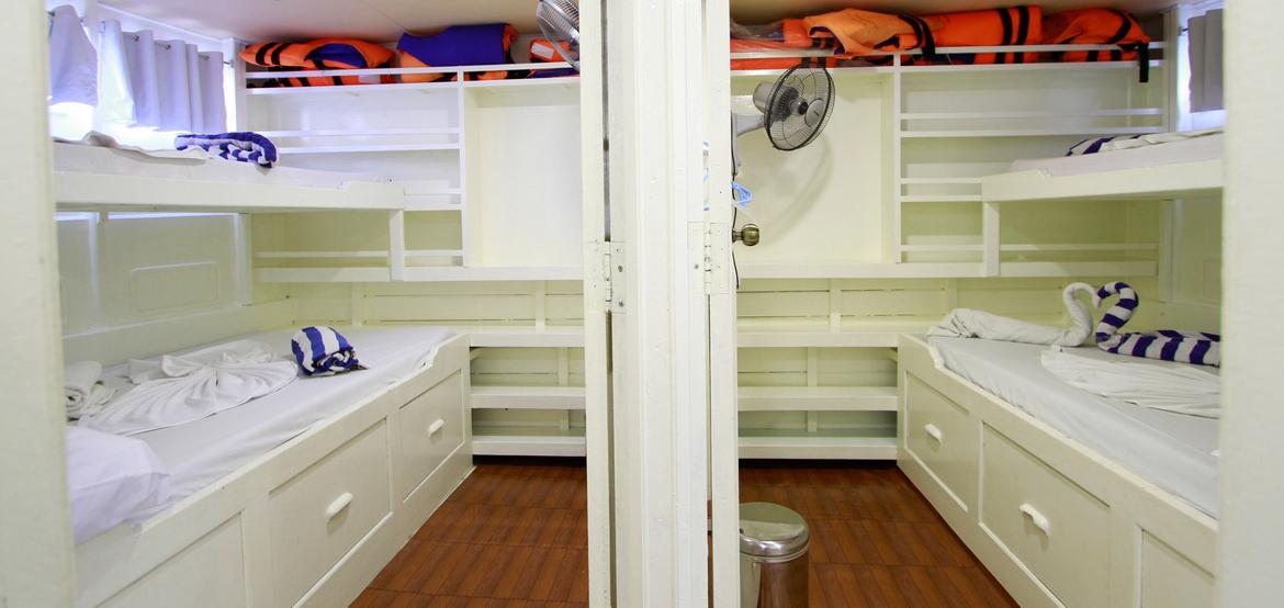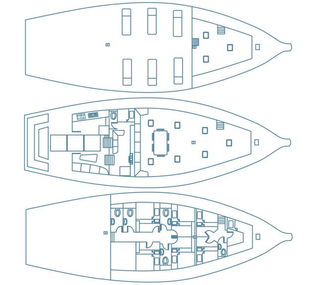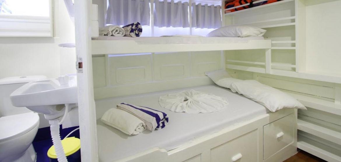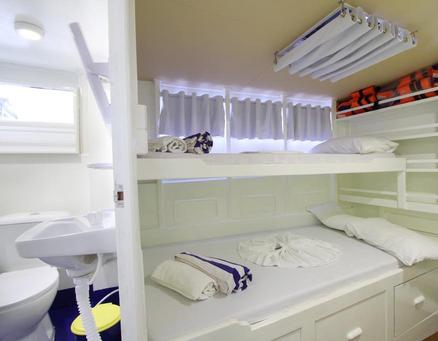 - Kabinen: 2 Doppelkabinen + 3 Kabinen mit Etagenbetten