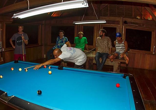 Das Restaurant ist ideal auf Surfer zugeschnitten – mit nahrhaften, kräftigen Gerichten, die Energie für Ihre Sessions im Wasser liefern. Über ein stilvolles Holzdeck ist es direkt mit Pool, Spielzimmer, Bar und Palapa verbunden – der perfekte Ort für Entspannung und gesellige Stunden nach dem Surfen.