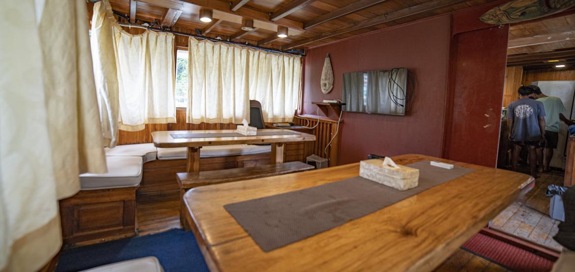 Die Abende auf der Maki sind wirklich besonders. Nach dem Abendessen versammelt sich jeder in der Lounge, um die Fotos und Videos des Tages anzusehen. Es ist ein unterhaltsamer, unbeschwerter Moment, gefüllt mit Lachen, gemeinsamen Erinnerungen und wertvollem Surf-Feedback.
