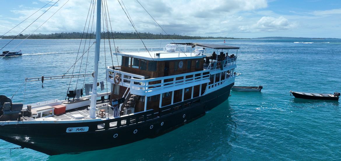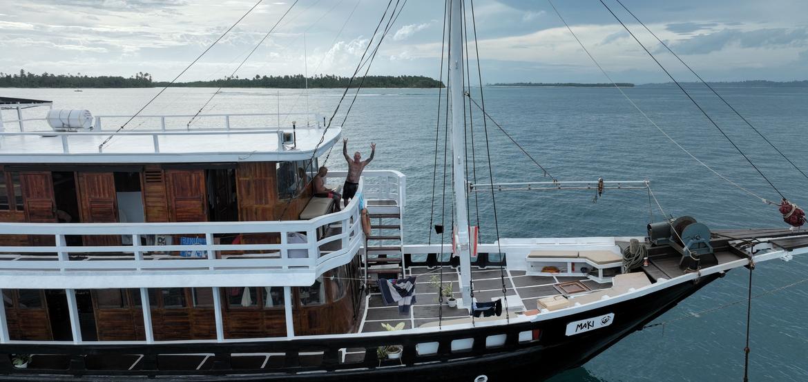 Maki ist eine handgefertigte Phinisi-Schoner, die 2016 in Sulawesi, Indonesien, gebaut wurde – der Heimat der legendären Bugis-Schiffbauer. Diese Meisterhandwerker haben ihr maritimes Wissen über Generationen hinweg weitergegeben und die reiche seefahrerische Tradition Indonesiens geprägt. Während der traditionelle Holzbootbau mit dem Aufstieg von Fiberglas und Aluminium immer seltener wird, steht die Maki als seltene Hommage an diese fast verschwundene Kunst.