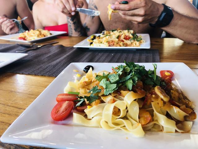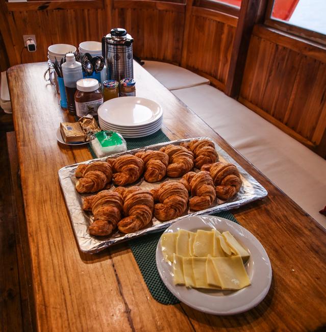 Die Mahlzeiten an Bord sind königlich. Das Menü umfasst eine wechselnde Auswahl an frischem Fisch, Garnelen, Tintenfisch, Hähnchen und Rindfleisch sowie köstliche vegetarische Gerichte. Unsere Köche vereinen traditionelle brasilianische und indonesische Küche mit einer gesunden Note, sodass für jeden Geschmack etwas dabei ist.