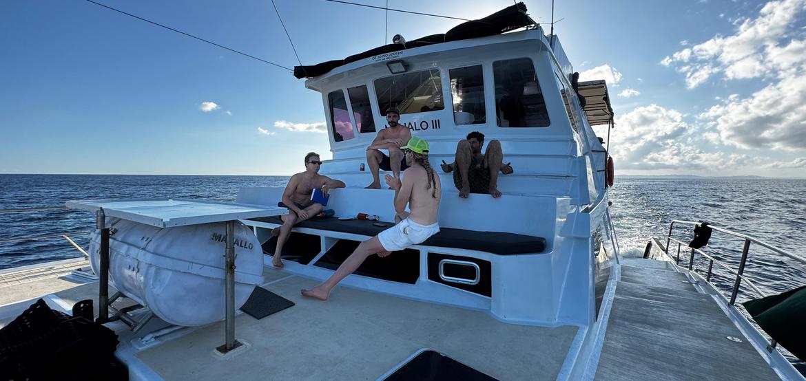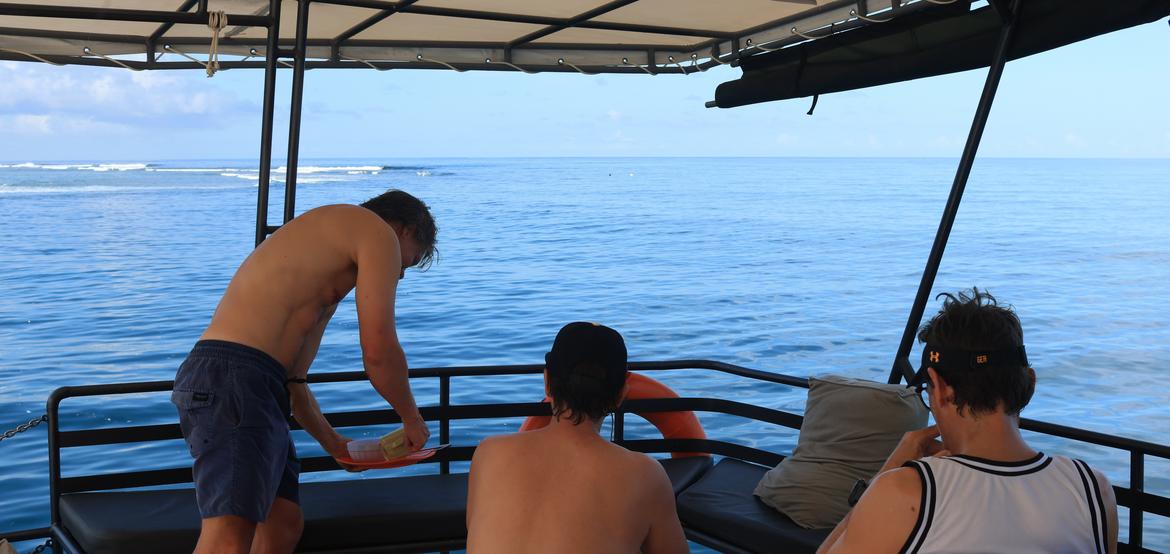 Angel-, Speerfisch- & Schnorchelausrüstung sind an Bord enthalten – ideal für entspannte Sessions zwischen den Surfs.
