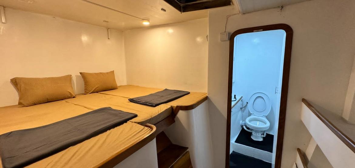 Jede der vier Kabinen ist für nur zwei Gäste ausgelegt und bietet ein privates Bad sowie Klimaanlage – Privatsphäre und Komfort auf See.