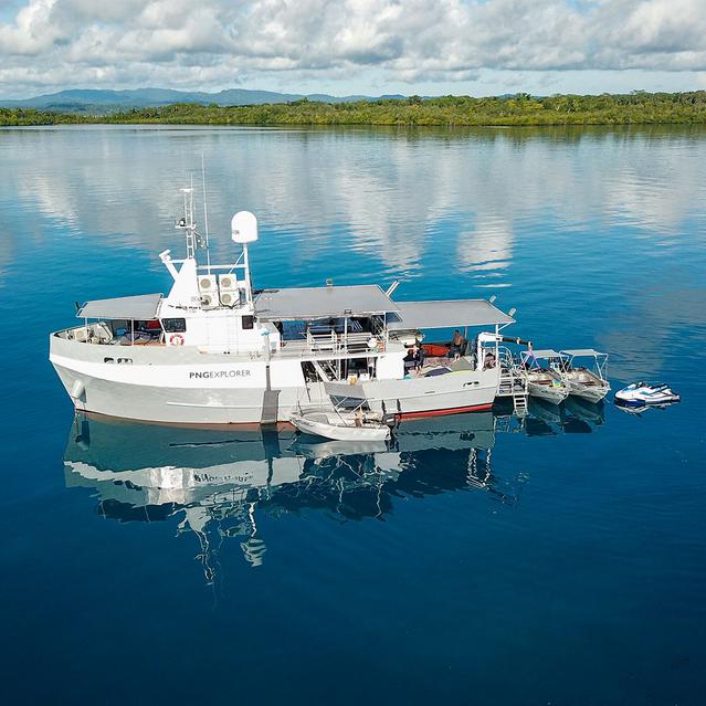 - Später Nachmittag: Ankunft in Kavieng. Wir holen dich am Flughafen ab, bringen dich zum Hafen und fahren dich per Beiboot zur PNG Explorer, die im Hafen von Kavieng liegt.