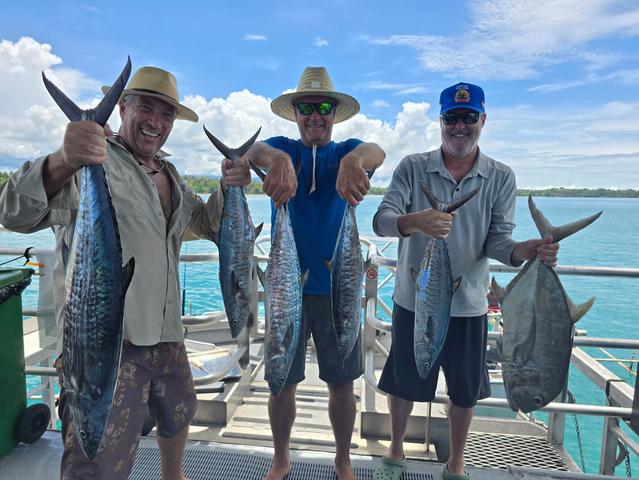 Zielarten u. a.: Dogtooth, Tuna Yellowfin Tuna, Spanish Mackerel, Wahoo, Giant Trevally. Gefischt wird an Riffkanten, Drop-offs, und in blauen Tiefsee-Kanälen. Die Trips sind all-inclusive und ideal für Alleinreisende, Freunde, Familien oder Firmengruppen — ein authentisches PNG-Erlebnis: roh, aufregend und mit großem Fisch-Potenzial.
