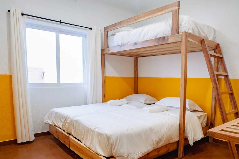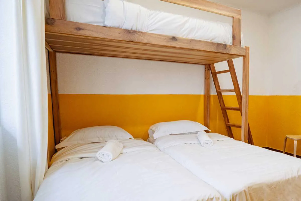 These comfortable rooms have several single beds for motivated surfers. Naturally, pillows, blankets, sheets and bath towels are included. So all you have to do is bring your surfboard and good mood.
