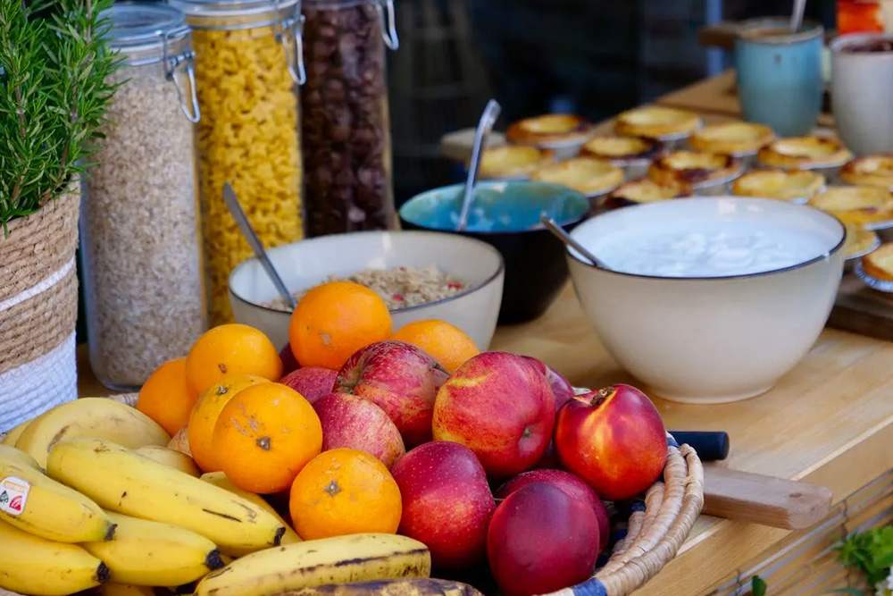 Während du deinen Surfurlaub in Lissabon genießt, kannst du dich jeden Morgen auf ein reichhaltiges Frühstücksbuffet freuen. Dazu gehören verschiedene Brotsorten und Aufstriche, aber auch leckeres Müsli und frisches Obst. Und oft gibt es noch eine kleine Überraschung, die dein Frühstückserlebnis aufpeppt... also greif ruhig zu! Im Rahmen des reichhaltigen Frühstücks kannst du so viel Kaffee, Tee, Wasser und Milch trinken, wie du möchtest.