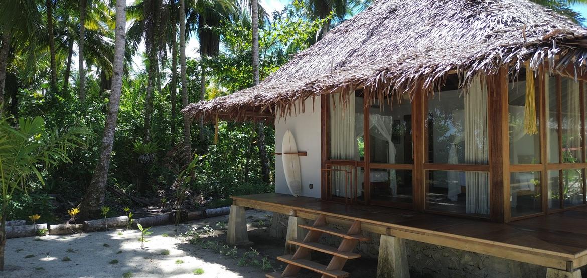 Mit nur wenigen Bungalows auf dem Grundstück genießen Gäste absolute Ruhe, direkten Strandzugang und eine Lage in erster Reihe zu einigen der ikonischsten Surfspots der Mentawais.
